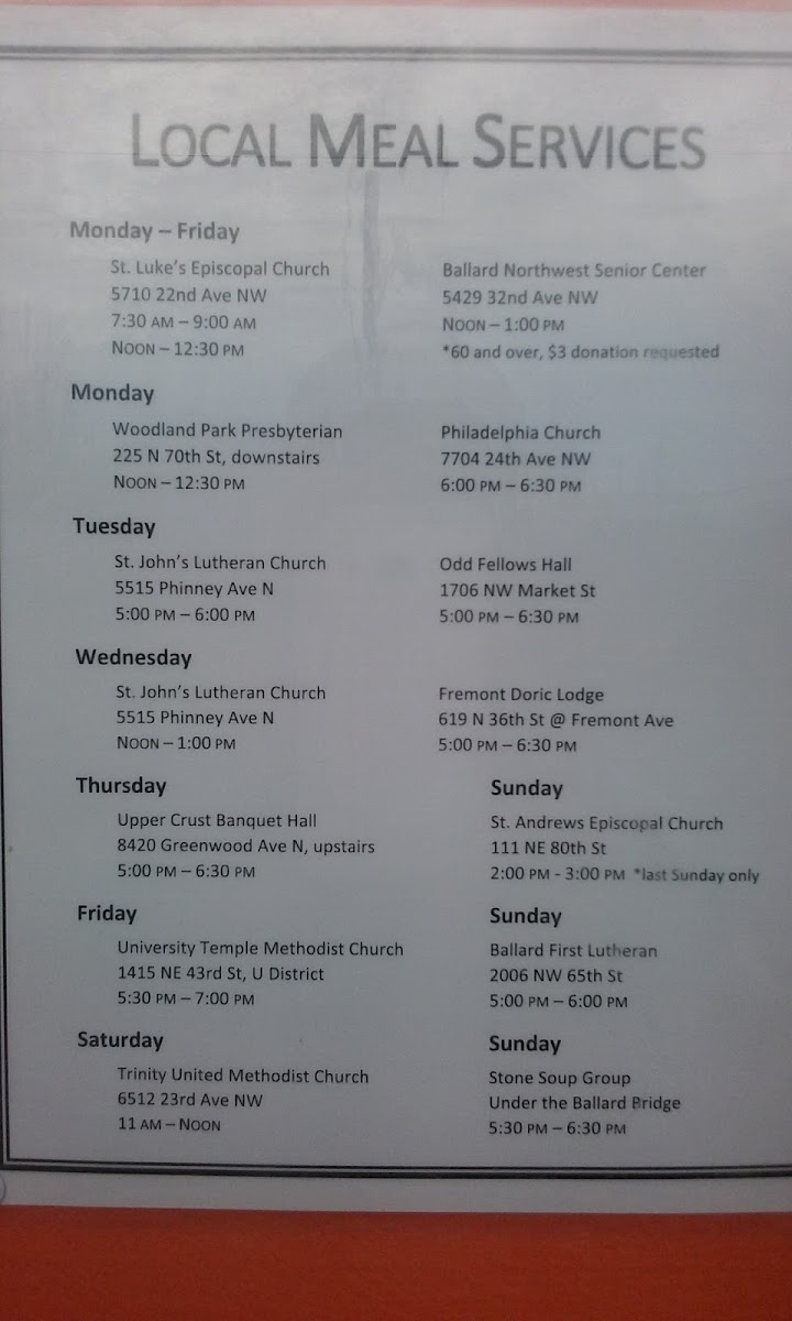 Introducing the menu at Ballard Food Bank, a vital community resource located at 1400 Leary Way NW, Seattle, WA. This food bank not only provides free hot meals daily but also allows patrons to shop weekly for grocery essentials, offering a stress-free experience akin to visiting a grocery store.
